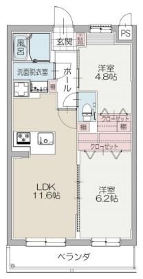 2LDK( LDK11.6畳/洋室6.2畳/洋室4.8畳 ) |